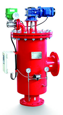 S系列自清洗過濾器是一種全自動自清洗水過濾器,過濾器網筒內安裝一套刷子,刷子由電機帶動旋轉,在過濾器端蓋上安裝一個電動排污閥。工作時,濁水由進水口進入過濾器濾筒內,通過不銹鋼楔形網過濾污物。凈水由出水口流出,當污物在濾網表面聚集過多時,造成過濾出水不暢,濾筒內部腔體壓力上升,當進出水的壓力差值達到一定值時(預先設定),壓差開關發出信號給控制器,控制器啟動減速機電機帶動刷子,旋轉刷除濾網表面的污物雜質。同時打開電動排污閥排出污物,清洗時間為20-120秒(可就地可設置)。清洗時無需斷流,排污壓力損失不超過0.5bar,流量損失不超過1%。