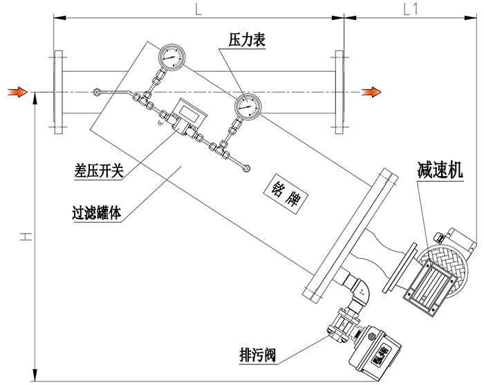 采用工業單片PLC自動控制,中文或英文顯示。可根據壓差或定時控制過濾器自動清洗,并可手動、強制清洗。現場可設定過濾時間、清洗時間。運行信號、清洗信號、故障信號輸出及485通訊接口。