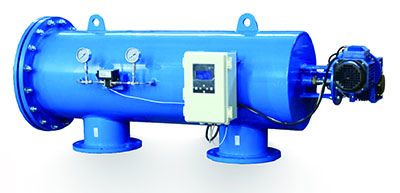 S系列自清洗過濾器是一種全自動自清洗水過濾器,過濾器網筒內安裝一套刷子,刷子由電機帶動旋轉,在過濾器端蓋上安裝一個電動排污閥。工作時,濁水由進水口進入過濾器濾筒內,通過不銹鋼楔形網過濾污物。凈水由出水口流出,當污物在濾網表面聚集過多時,造成過濾出水不暢,濾筒內部腔體壓力上升,當進出水的壓力差值達到一定值時(預先設定),壓差開關發出信號給控制器,控制器啟動減速機電機帶動刷子,旋轉刷除濾網表面的污物雜質。同時打開電動排污閥排出污物,清洗時間為20-120秒(可就地可設置)。清洗時無需斷流,排污壓力損失不超過0.5bar,流量損失不超過1%。
