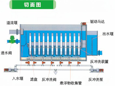 8、抽吸清洗泵、自控閥、管道組成濾盤清洗和排泥系統。