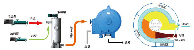 絮凝 | 包括外帶可變速攪拌裝置的絮凝器,可優化絮凝,減少聚合物的浪費 | 絮凝發生在離心機內部,不易控制,聚合物利用率低消耗量大,增加經費 |